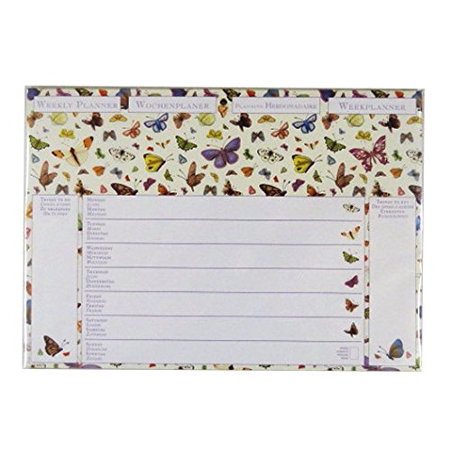 This beautifully designed and well made A4 Weekly Planner by Quire is extremely good quality. Comes with 60 sheets of 90gsm Quality Brilliant White Writing paper with with various butterflies forming the design. This weekly planner is undated and separated into days from Monday to Sunday so it can be used any time during the year. Also includes a section for writing any "Things to do" and another section for writing any "Things to buy" items. Padded at the head for easy individual sheet tear off and includes a strong grey board back for stability and protection on any surface and also includes a drill hole at the head for hanging if needed. Great all round quality weekly planner with a lot of detail to use at home or office, also just as great to give as a gift.