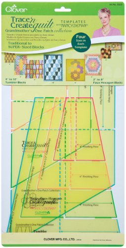 Clover: Trace 'N Create Quilt Templates by Nancy Zieman: grandmother' S One Patch Collection. This easy to use template allows you to create a dramatic quilt from just one block. Make 4 inch to 10 inch blocks with the tumbler block template or 2 inch to 8 inch blocks with the faux hexagon block template. Traditional To super- Size Blocks. This package contains one tumbler block template and one faux hexagon block template. Instructions are printed on the back of the packaging. Imported.